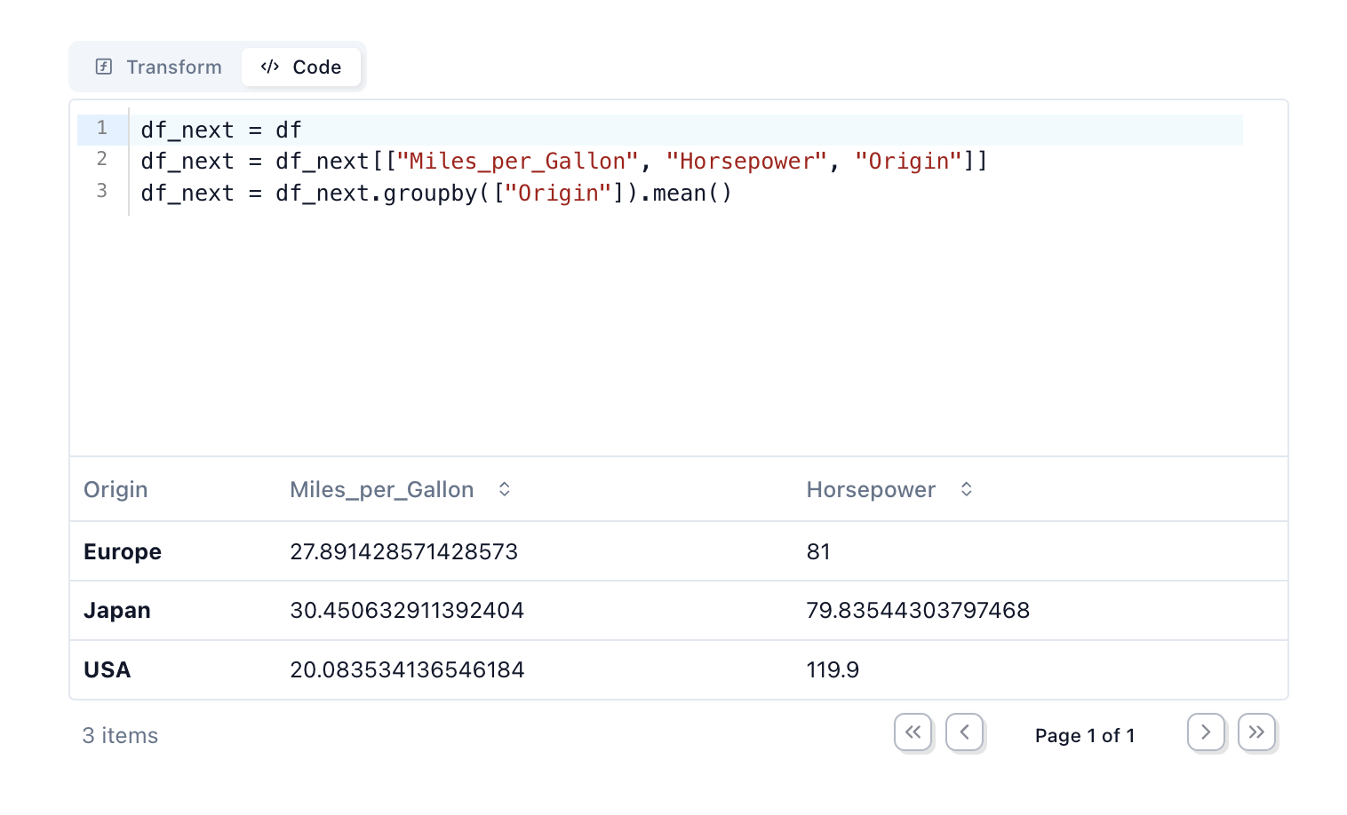 - Transform dataframes with filters, groupbys, aggregations, and more, no code required